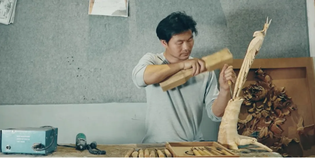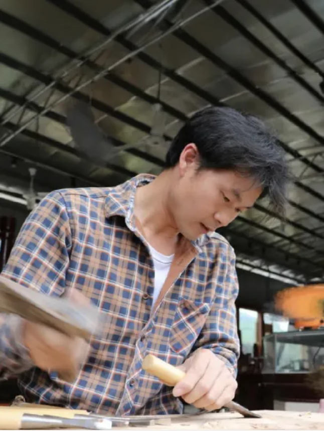 往后的十余年里,毛刘军左手持雕刻刀,右手紧握木槌,每天凿刻着木板,日复一日,慢慢地,他从“小学徒”变成了“大师兄”,他的手艺也从小山村传扬到全国各地。此时,他已经凭着自己精湛的手艺实现了“过上好生活”的梦想。