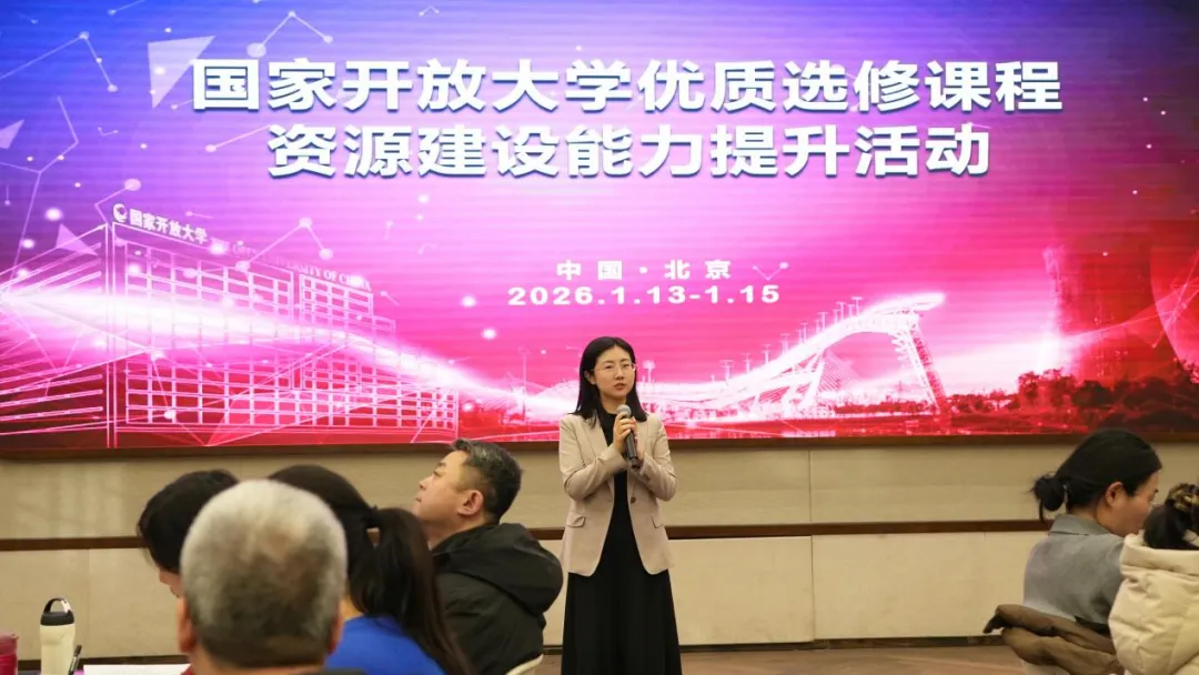 为贯彻落实《数智赋能一体化协同推进开放大学教育教学综合改革实施意见》,进一步提升省开课建设质量,1月13日至15日,国家开放大学在北京举办优质选修课程资源建设能力提升活动。来自国家开放大学2025年度优质选修课程资源孵化立项的25家分部的33个团队负责人,以及资源工作负责人共80余人参加。