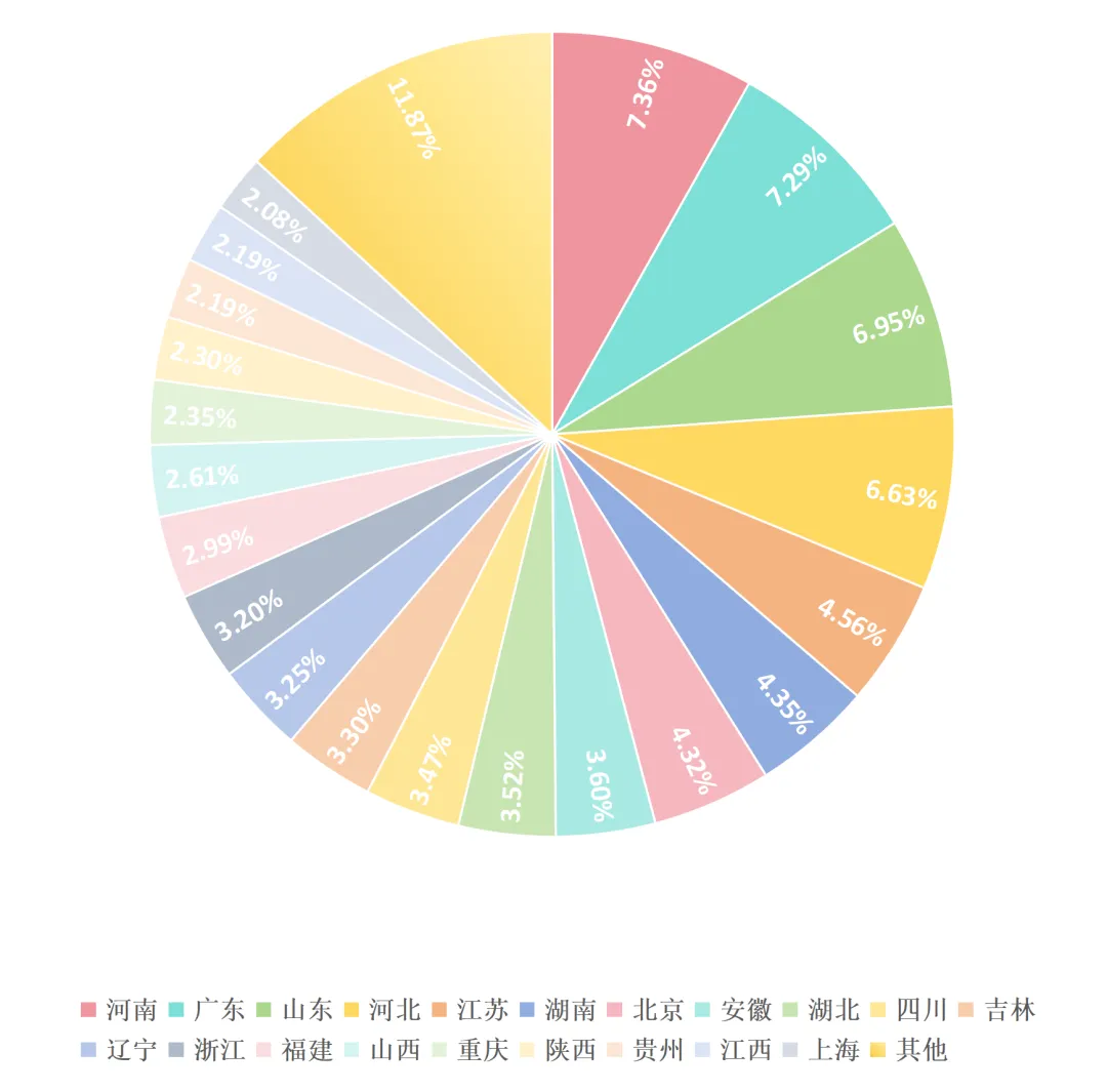 注:图表中【其他】包含的地区为:黑龙江、广西、云南、内蒙古、新疆、天津、甘肃、宁夏、海南、青海、西藏、香港。