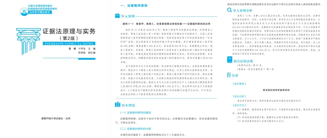 《证据法原理与实务(第2版)》教材覆盖证据法概述、证据种类、证明责任、证明标准等十大核心单元,秉持“以案释理、以案释法”实务导向,每个知识点设置导入案例并做导学案例简要分析,每单元专设实训模块,模拟真实案例情境,系统传授证据分析、事实认定、法律适用等核心实务技能,以提升学生解决复杂法律问题的实战能力。