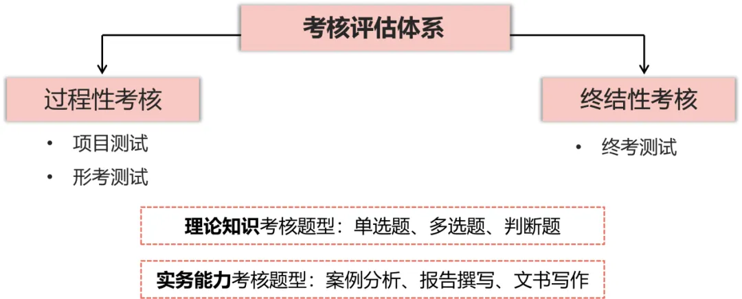 考核评估层(能力导向评价):构建过程性与终结性结合、知识与能力并重的考核体系,既有单选、多选和判断题等来夯实理论基础,也有案例分析报告撰写、法律文书写作等实务类考核任务来精准评估学生的实务应用能力,真正实现“以评促学、以考导学”。