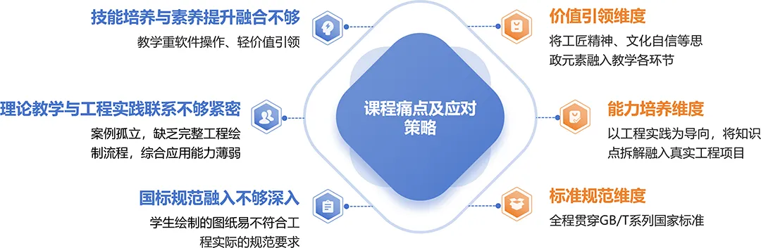 课程团队通过调研发现,当前土木工程CAD教学存在三大痛点:一是技能培养与素养提升融合不够,教学重软件操作、轻价值引领;二是理论教学与工程实践联系不够紧密,教学案例相对零散,缺乏完整的工程绘制流程,学生难以形成系统的工程思维,综合应用能力薄弱;三是国标规范融入不够深入,学生绘制的图纸易不符合工程实际的规范要求。